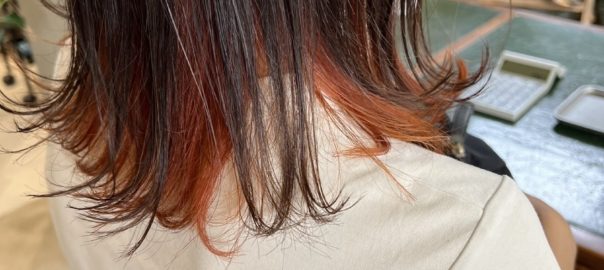いつも担当させていただいてるお客様。今回はインナーカラーをオレンジにしました。夏だからこそ似合う、パキッとオレンジ。インナーだから派手になりすぎないのが、お客様の生活スタイルに合っていてよかったです。 色落ちはしますが、 … 続きを読む オレンジカラー